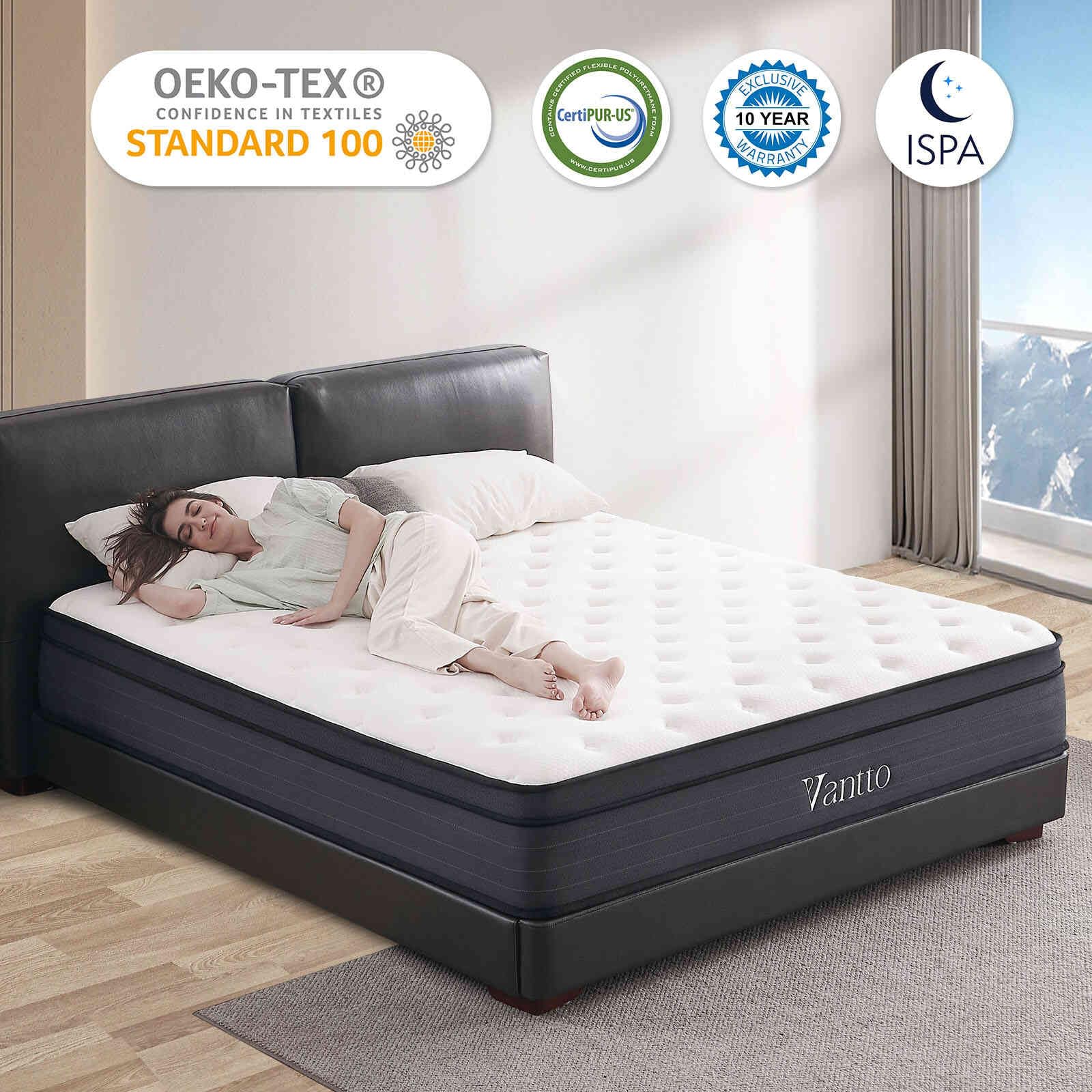 - 【Breathable and Healthy】Vantto hybrid mattress is made of high-quality knitted fabric, which is skin friendly, comfortable, and breathable, keeping you dry while sleeping. The mattress's independent pocket spring system can enhance air circulation and prevent heat retention, resulting in a cool and comfortable sleep.