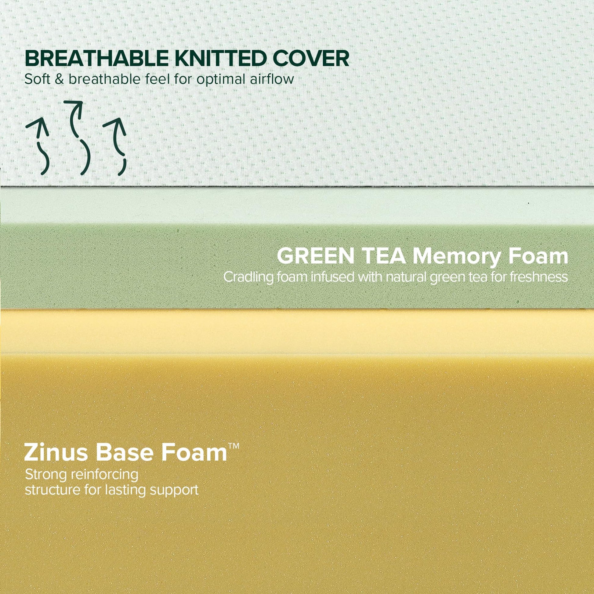- THE RIGHT COMBINATION - Refreshing green tea and moisture-absorbing charcoal infused into three layers of top-notch foam. This mattress cradles every curve—alleviating those points of tension and allowing your body to recover as you rest.